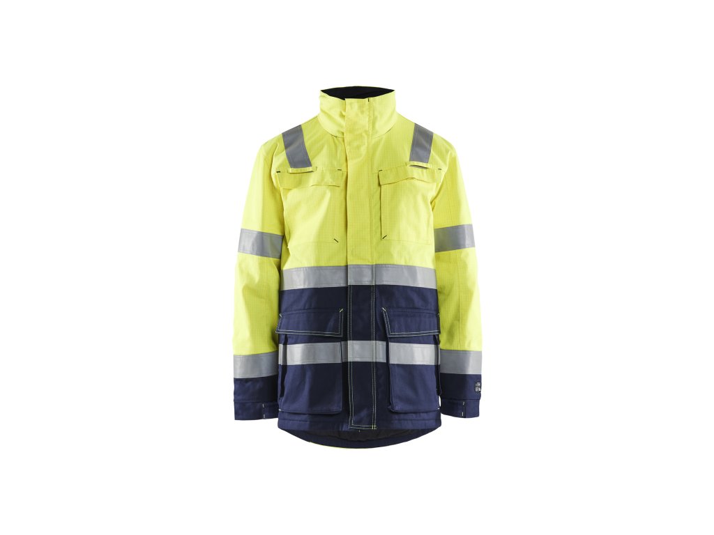 Nehorľavá, odolná zimná bunda s podšívkou, ideálna na prácu v náročnom a chladnom prostredí. Golier je vybavený gombíkmi, aby bolo možné použiť kapucňu 2169 (predáva sa samostatne). Bunda odolná voči olejom, nečistotám a vode má dve pútka na plyn, obojsmerný zips, nastaviteľný pás, náplety na koncoch rukávov a bočné vrecká.