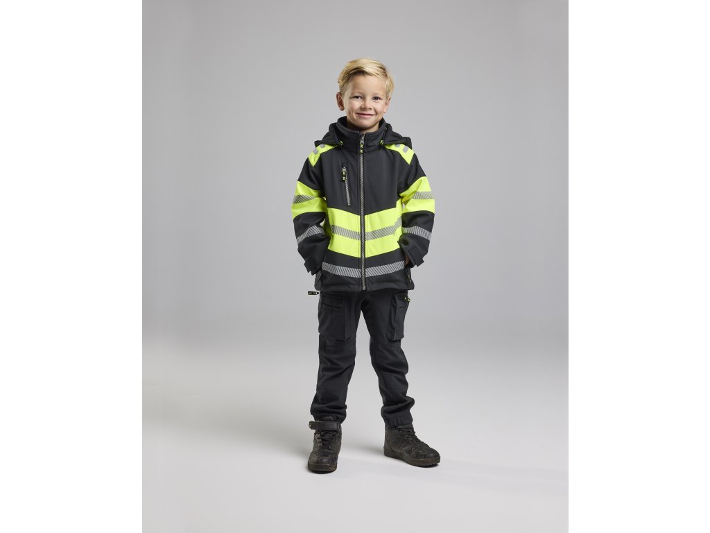 Lehká softshellová bunda pro děti, která je díky svému materiálu nesmírně měkká, pohodlná a pružná. Bunda je dvoubarevná s převážně tmavými částmi, takže je vysoce odolná vůči ušpinění a zároveň poskytuje v případě potřeby vynikající viditelnost. Tato reflexní bunda kombinuje lehký, strečový materiál s pevností, která se u odolných oděvů očekává. Materiál je navíc nepromokavý, odolný vůči větru a skvěle prodyšný. Odnímatelná kapuce je připevněna pomocí patentek.Dodatočné parametre