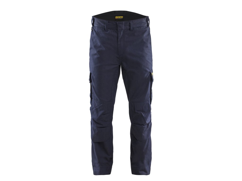 Kalhoty vyrobené z měkkého, poddajného a odolného materiálu s přední stranou podšitou tenkou podšívkou. V podšitých částech jsou kalhoty schváleny podle požadavků na vyšší třídu ochrany proti obloukovému výboji APC 2. Měchová kapsa s patkou na nohavici, na levé straně s vnitřním držákem na průkaz a držákem na telefon, a měchová kapsa s patkou na pravítko na pravé straně. Kalhoty mají dvě zadní kapsy s patkami na patentky. Oděv je bez kovů, pouze s plastovými patentkami a zipem. Certifikováno podle norem EN 1149-5, EN ISO 11611, EN ISO 11612, EN 61482-2 APC 1 (místa s podšívkou APC 2), EN 13034.Dodatočné parametre