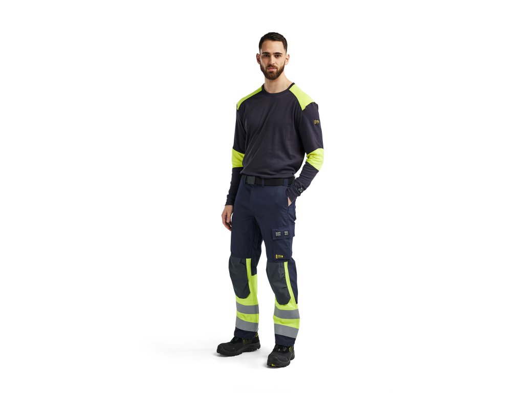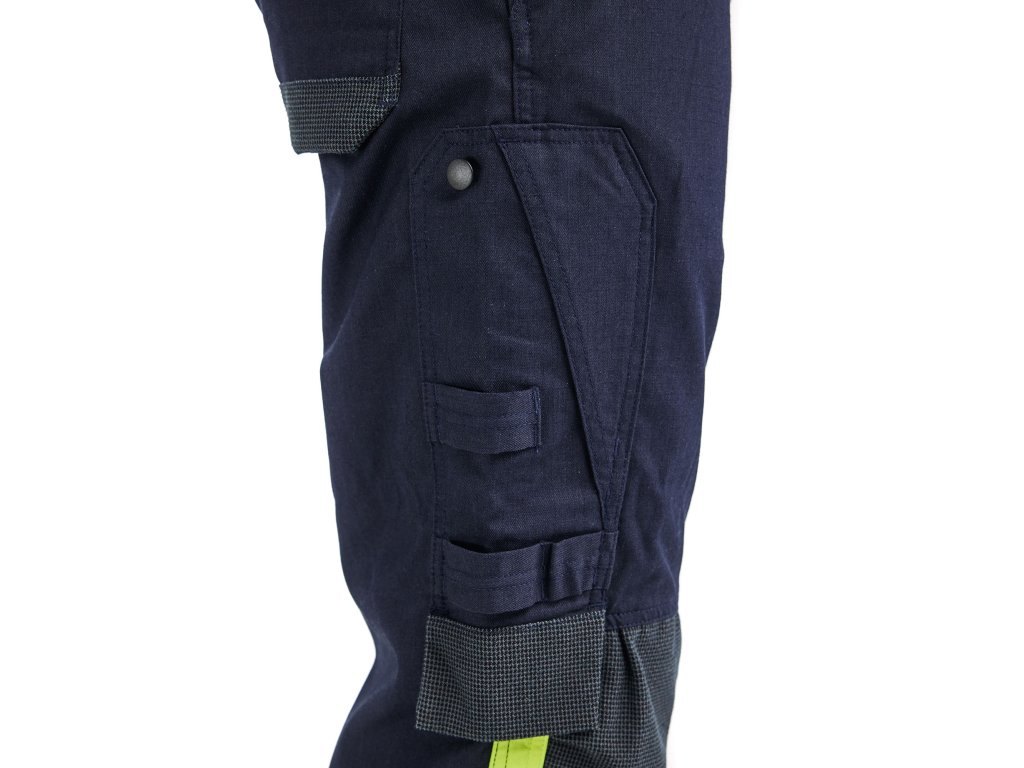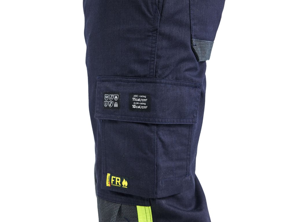 Kalhoty vyrobené z měkkého, poddajného a odolného materiálu s přední stranou podšitou tenkou podšívkou. V podšitých částech jsou kalhoty schváleny podle požadavků na vyšší třídu ochrany proti obloukovému výboji APC 2. Mnoho chytře řešených kapes, které vyhovují certifikačním požadavkům. Oděv je bez kovů, pouze s plastovými patentkami a zipem. Certifikováno podle EN ISO 20471, EN 1149-5, EN ISO 11611, EN ISO 11612, EN 61482-2 APC 1 (místa s podšívkou APC 2), EN 13034.Dodatočné parametre