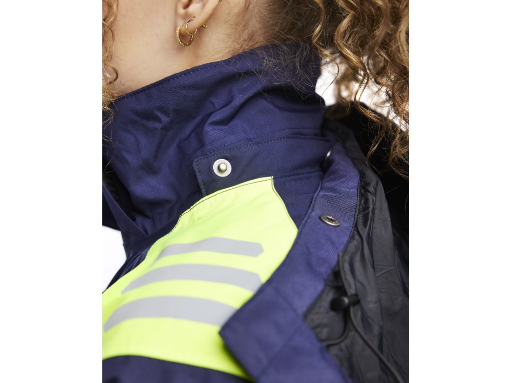 Reflexní bunda třídy 1 v dámském střihu. Je větruodolná a voděodolná s podlepenými švy a má odepínací kapuci přizpůsobenou pro přilby a chrániče sluchu. Podšívka z česané síťoviny pro extra pohodlí a regulaci teploty. K dispozici rovněž v pánském modelu 4420.Dodatočné parametre