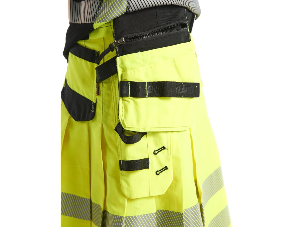 Suknice je legendární symbol Skotska. Společnost Blåkläder se této suknice chopila a vytvořila jiný typ funkčního oděvu pro ty, kteří se chtějí odlišit a využít pohodlí a vzdušnosti, kterou suknice poskytuje.Tato reflexní suknice je vybavena zpevněnými našitými kapsami z materiálu CORDURA® a kapsami vzadu. Mimořádně pohodlná suknice je vyrobena z vysoce odolné ripstop látky. Spolu s reflexní látkou a segmentovaným reflexním lemováním zlepšuje viditelnost nositele oděvu. Lemování s potiskem maskáčů a poutky pro pásek.Certifikováno podle normy EN ISO 20471, třída 2.Dodatočné parametre