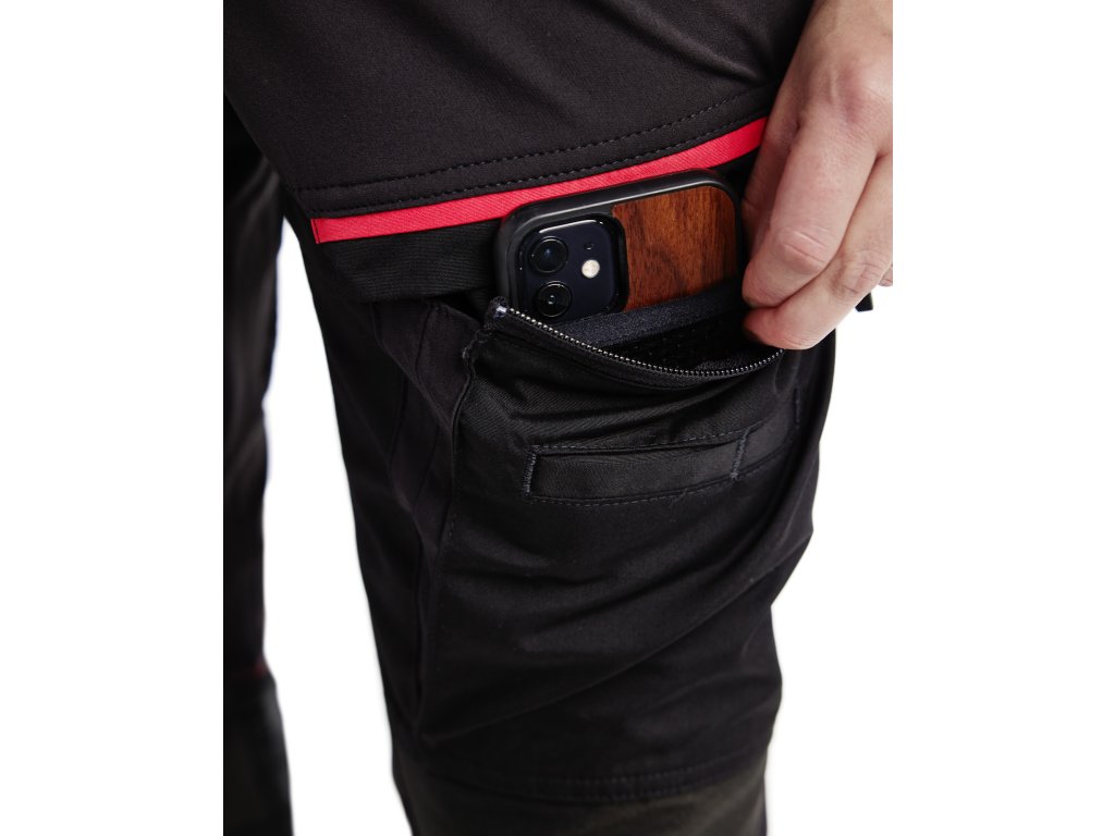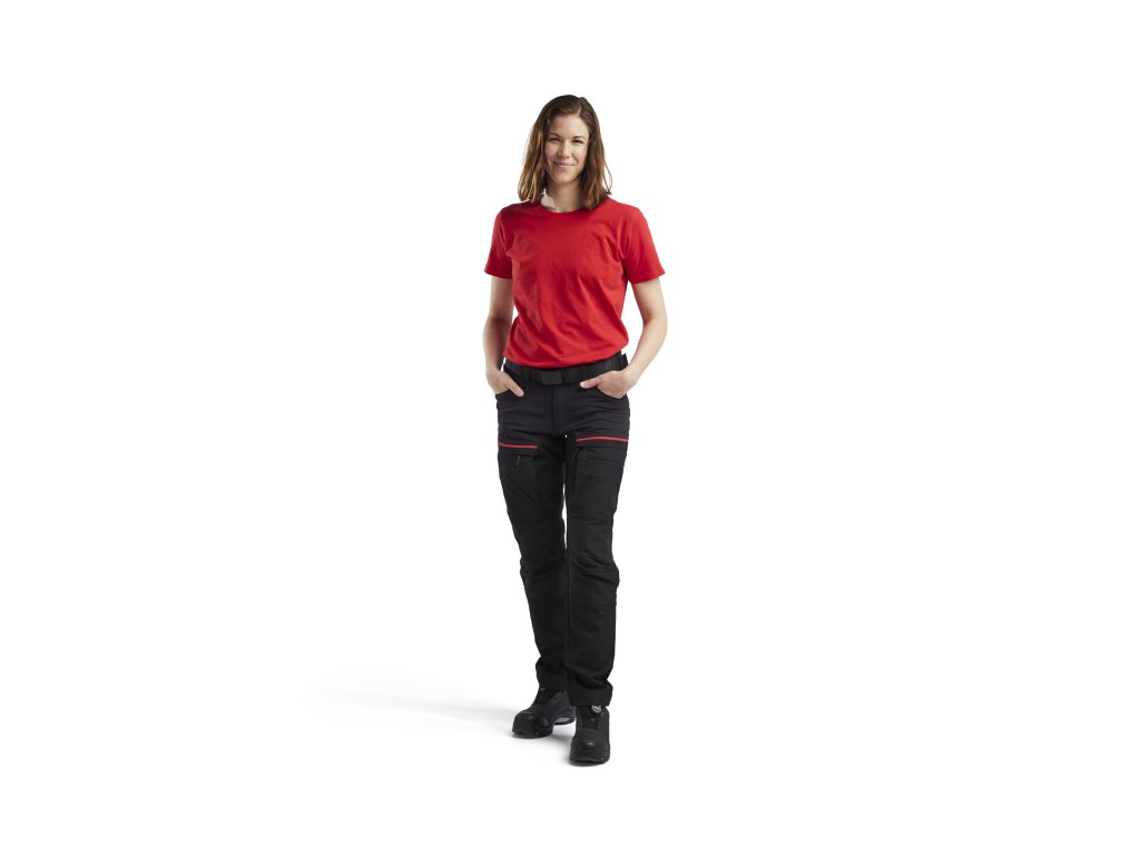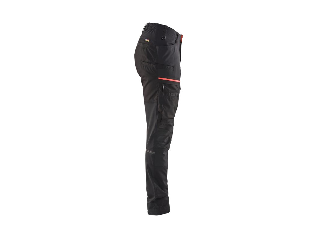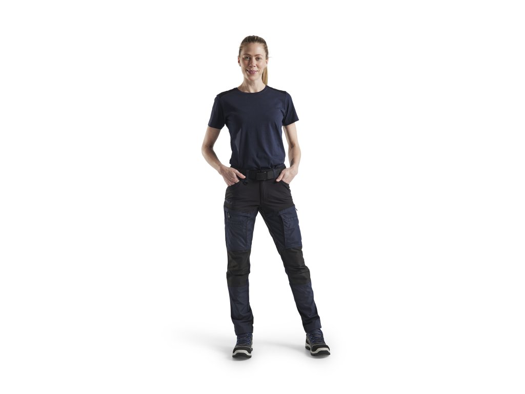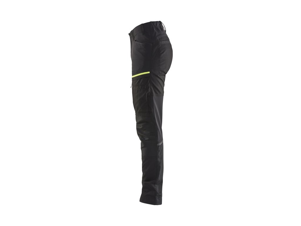 Flexible and strong service/transport trousers in women's fit who is suitable in different situations that require comfort and mobility. These trousers have an elasticated waist and a slightly narrower fit and are equipped with stretch panels for increased flexibility. The CORDURA®-reinforced knees further increase the durability. Has elongation at the bottom. The trousers have two pockets at the back, bellows pockets at the front and a leg pocket that is well suited for storing documents. Contrasting colours on the leg pocket and seams enhance the overall impression. Black reflective details give the garment increased visibility. Also available in men's model 1456.Dodatočné parametre