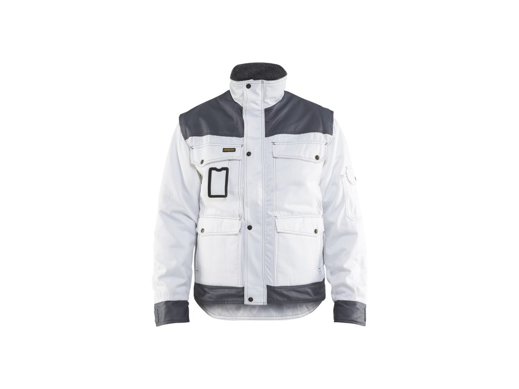Painter’s Jacket with a soft pile collar for extra comfort and warmth. It features chest pockets with flaps and zippered side pockets, along with additional front pockets with flaps for practical storage. Ribbed cuffs provide a snug fit, while an adjustable waist and extended back ensure extra coverage. A pleated back panel increases freedom of movement. Inside, there’s an inner pocket and a phone pocket, as well as a pen pocket on the arm for easy access to essential tools. A zip in the lining allows for quick heat-transfer application, and the D-ring offers a convenient attachment point for ID cards or other accessories. A well-designed jacket combining comfort, functionality and practical details—perfect for all your painting projects.Dodatočné parametre