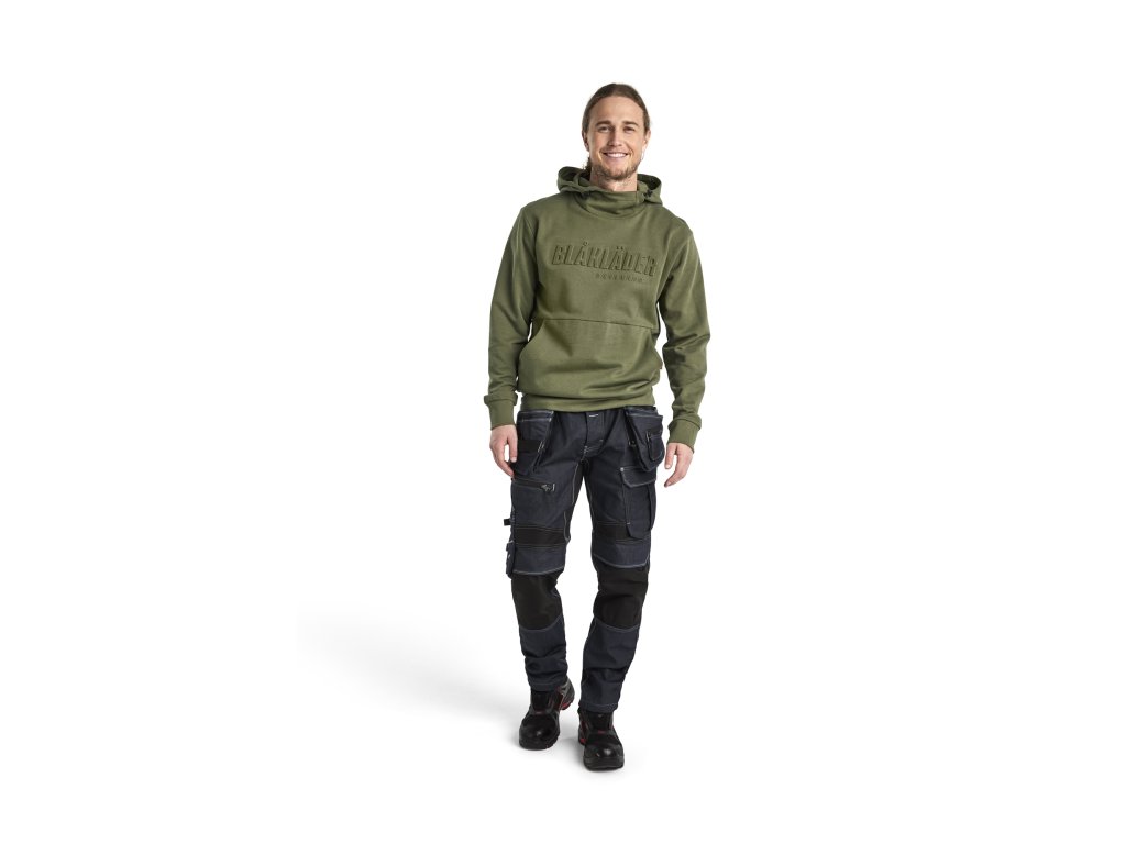 Stylová, příjemně teplá mikina s kapucí z měkkého žerzeje, ideální do práce i na běžné nošení. Má kapsu na telefon na zip s otvorem pro sluchátka. Mikinu zdobí atraktivní 3D nápis „Blåkläder“ na hrudi, který ukazuje, že v oblasti pracovního oblečení máte dobrý vkus. K dispozici rovněž jako dámský model 3560.Dodatočné parametre