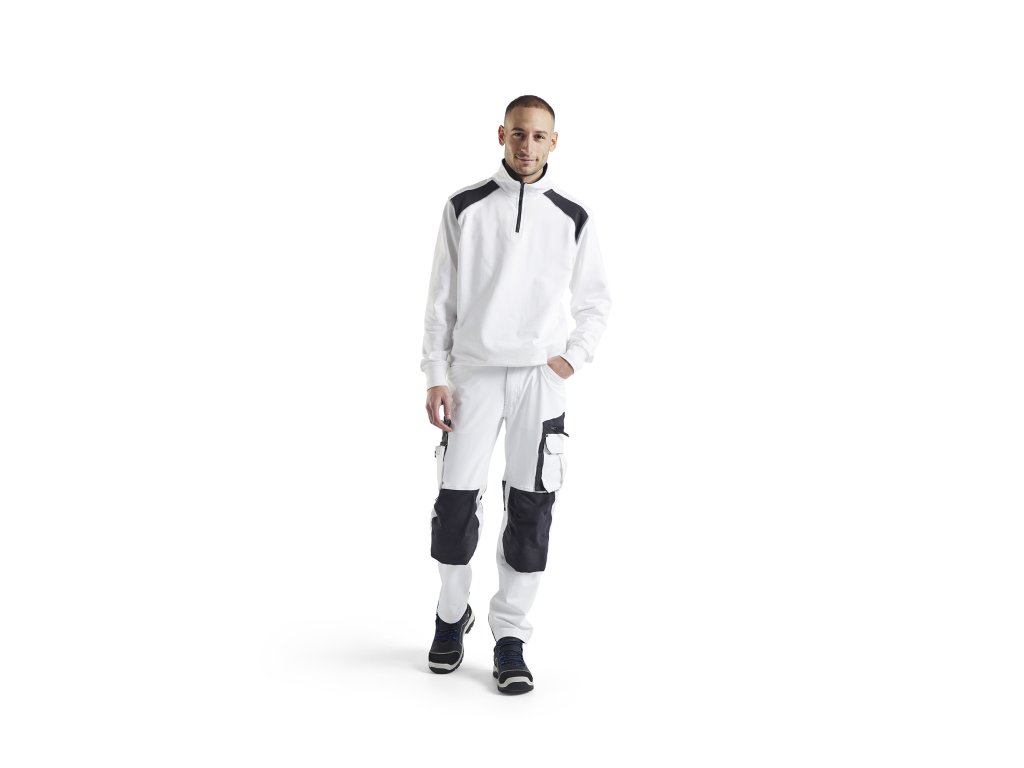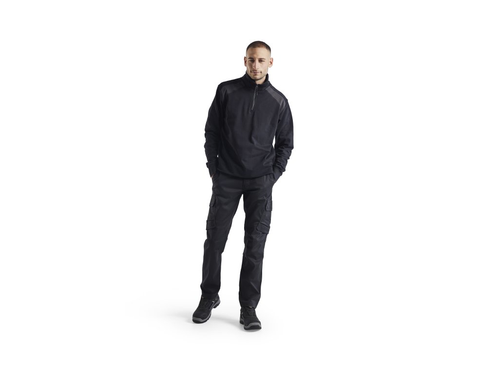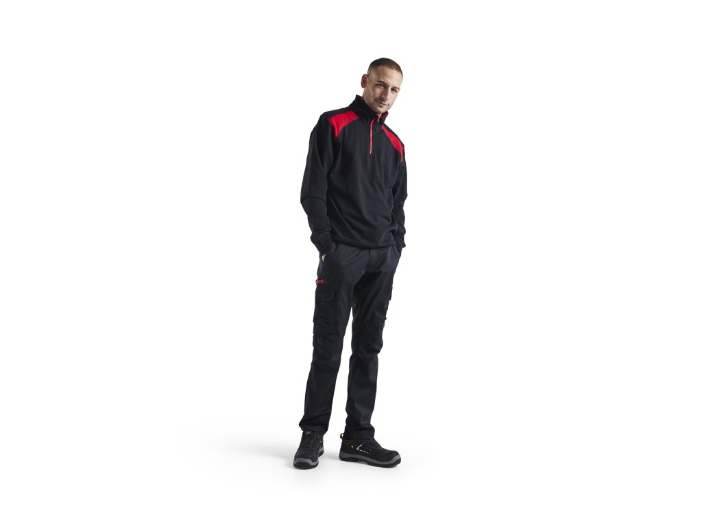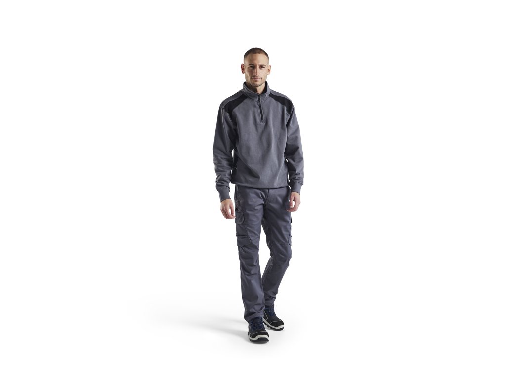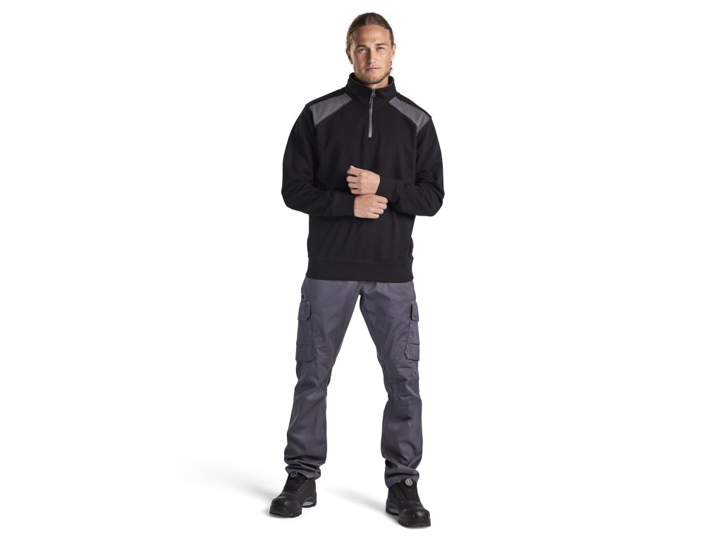 Pohodlná a prizpusobivá dvoubarevná mikina s vysokým límcem a zipem. Dokonale ladí s naší prumyslovou kolekcí.Dodatočné parametre