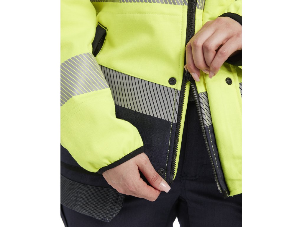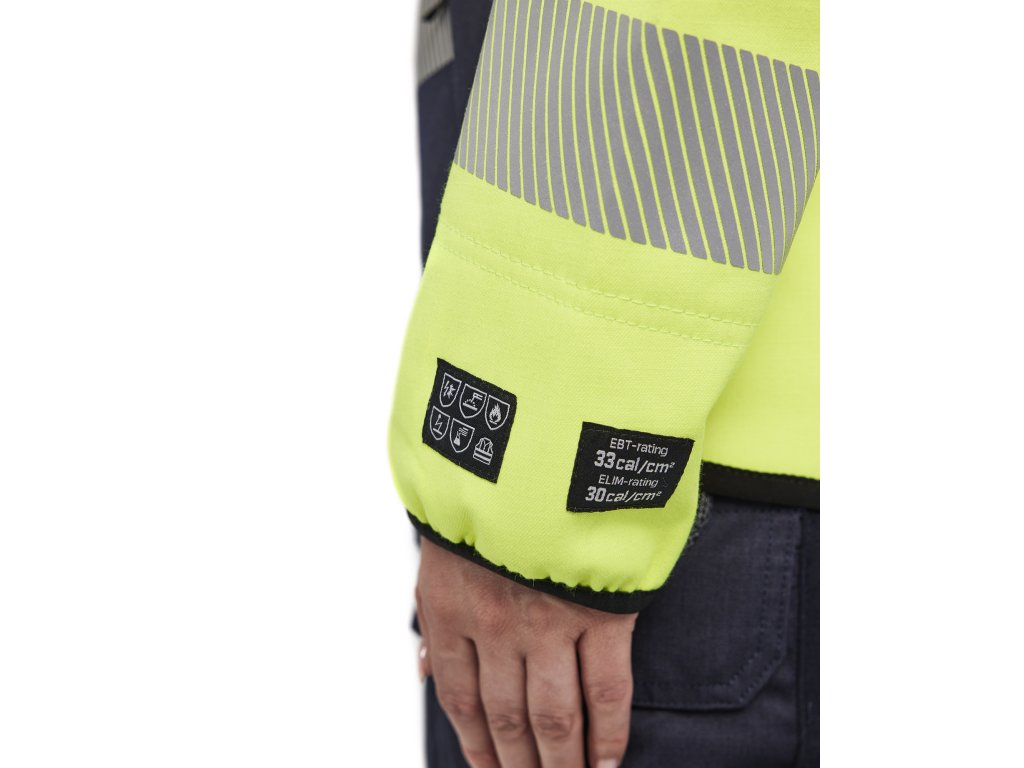 Dámská softshellová bunda bez kovů a polyesteru v reflexním provedení, která je inherentně ohnivzdorná. Tato voděodolná a větruvzdorná bunda je vyrobena ze softshellového materiálu odpuzujícího olej, nečistoty a vodu a zároveň se pyšní vynikající prodyšností. Má také prodloužená záda, ohýbané rukávy a manžety na koncích rukávů, což zvyšuje už tak fantastický komfort. Bunda nabízí funkční kapsy a dvě poutka umožňující zavěšení detektorů plynu a kyslíkoměrů. Díky tomu je softshellová bunda zvláště užitečná například pro práci v petrochemickém prostředí nebo v ropném a plynárenském průmyslu. Disponuje certifikací EN 1149-5. EN 13034. EN ISO 20471. EN ISO 11611. EN ISO 11612. IEC 61482-2.Dodatočné parametre
