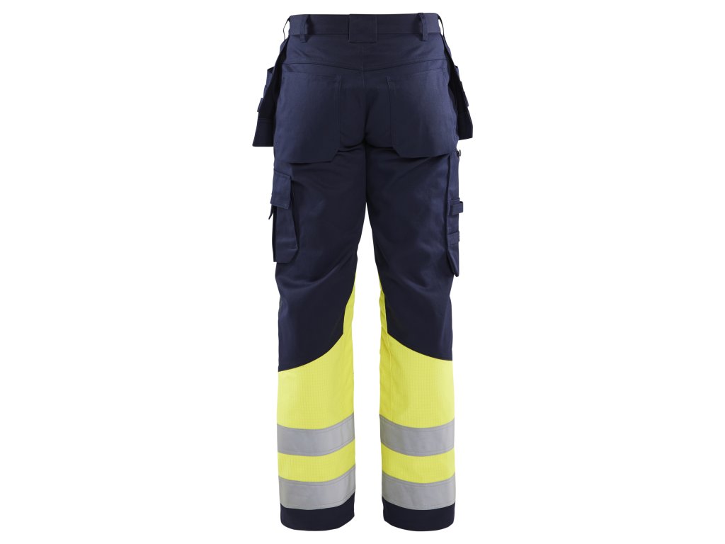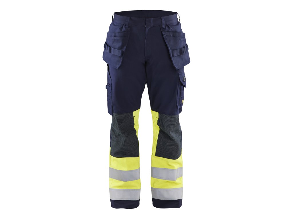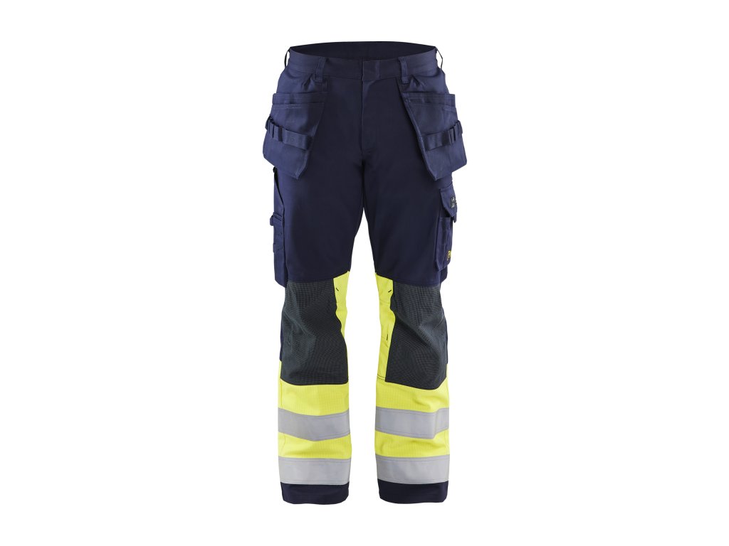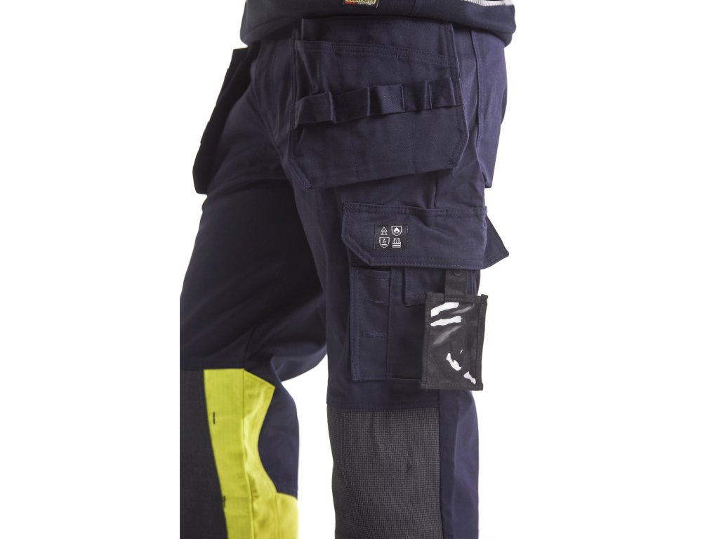 Multinormní kalhoty pro řemeslníky odolné vůči olejům, nečistotám a vodě, které nabízejí maximální ochranu při práci v náročných podmínkách. Vylepšené kalhoty pro řemeslníky s pevnými kapsami na hřebíky z odolného materiálu a zesílenými kapsami na ochranu kolen z materiálu Cordura®/Kevlar®/Protal™ s možností dvou úrovní umístění. Vhodné k průmyslovému praní. Certifikace podle norem EN 14404, EN 1149-5, EN ISO 20471, EN ISO 11612, IEC 61482-2. ATPV: 11,0 cal/cm².Dodatočné parametre