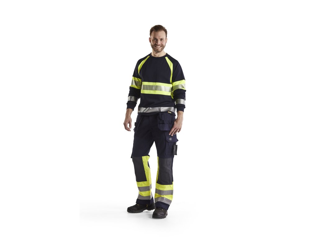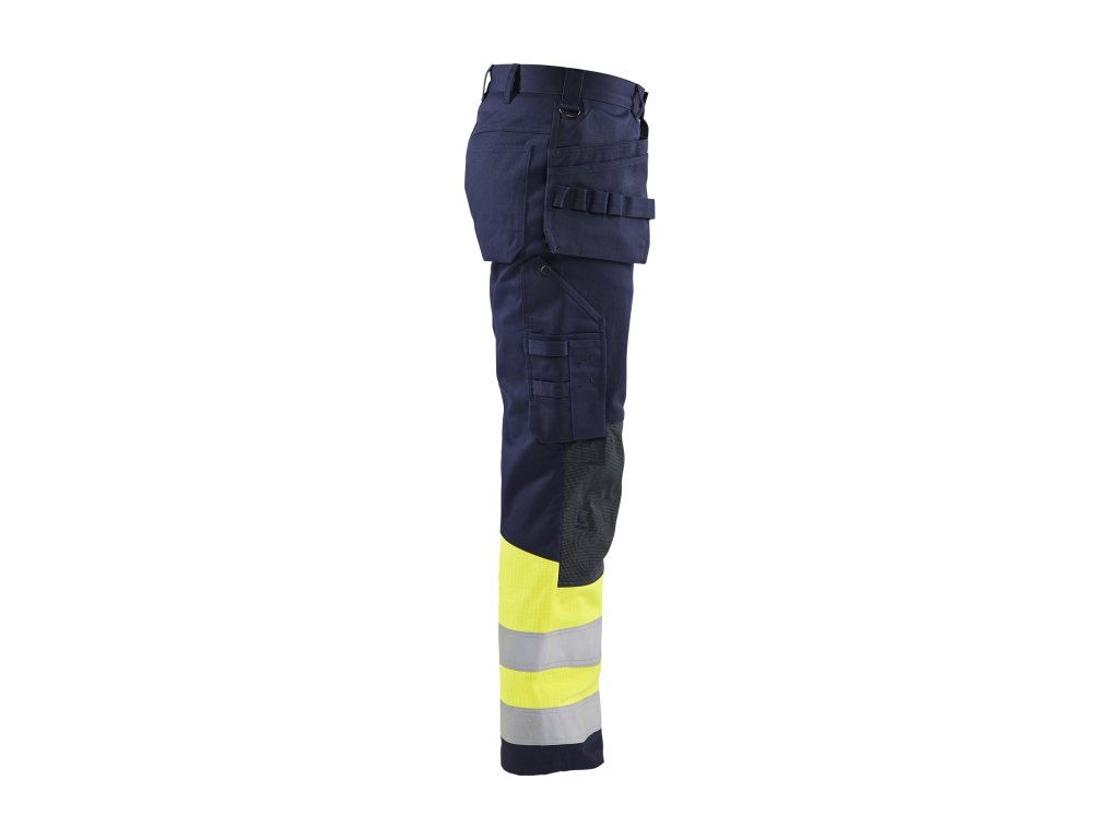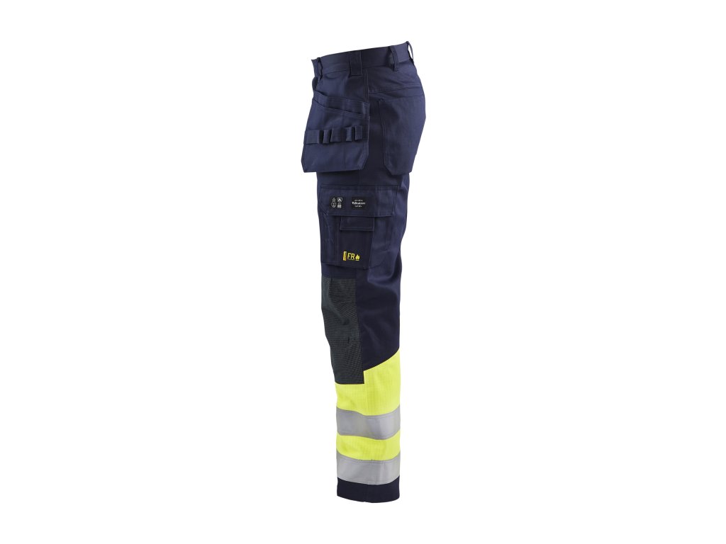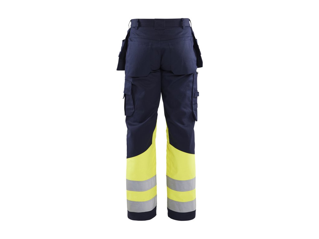 Multinormní kalhoty pro řemeslníky odolné vůči olejům, nečistotám a vodě, které nabízejí maximální ochranu při práci v náročných podmínkách. Vylepšené kalhoty pro řemeslníky s pevnými kapsami na hřebíky z odolného materiálu a zesílenými kapsami na ochranu kolen z materiálu Cordura®/Kevlar®/Protal™ s možností dvou úrovní umístění. Vhodné k průmyslovému praní. Certifikace podle norem EN 14404, EN 1149-5, EN ISO 20471, EN ISO 11612, IEC 61482-2. ATPV: 11,0 cal/cm².Dodatočné parametre