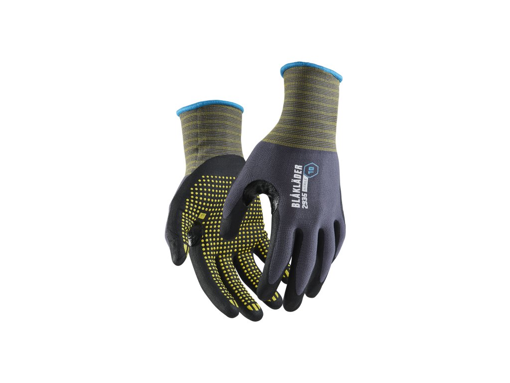 An extremely functional and nitrile-dipped glove that is best suited for work in assembly or construction. The very useful, flexible, and medium coarse all-round glove has a very good grip consisting of nitrile dots, which gives an improved grip in oily environments. 2935 is a reliable and high-performance helper of the finer kind.Dodatočné parametre