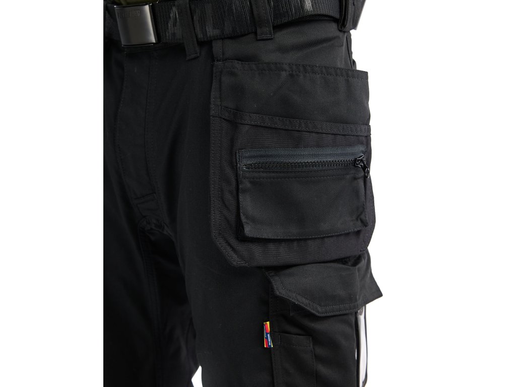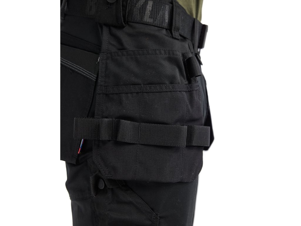 | Zesílení: | Kolenní kapsy zesílené materiálem CORDURA® Stretch, Kapsy na hrebíky zesílené materiálem CORDURA® |
