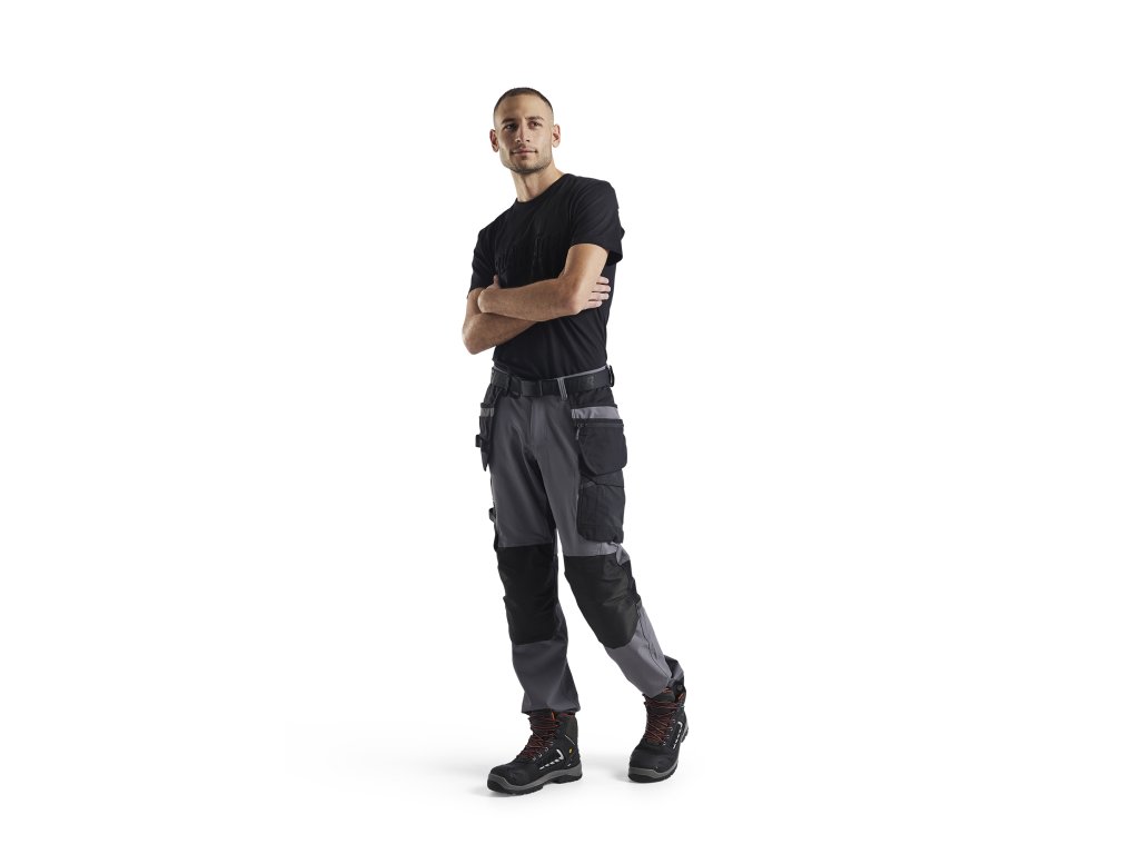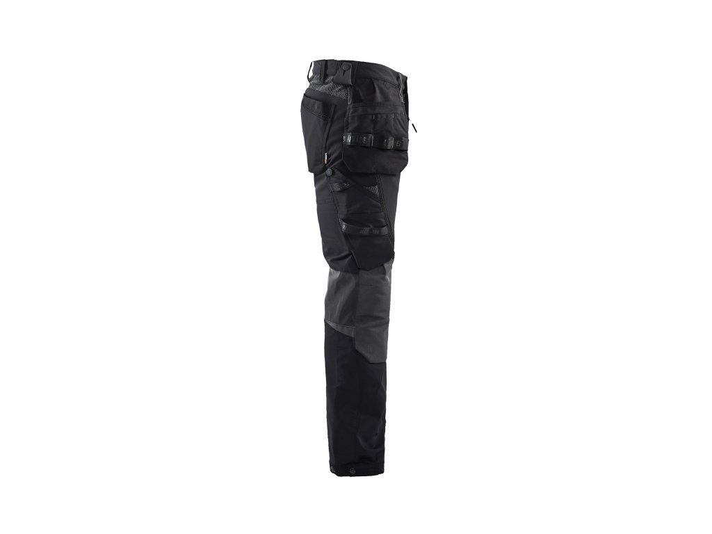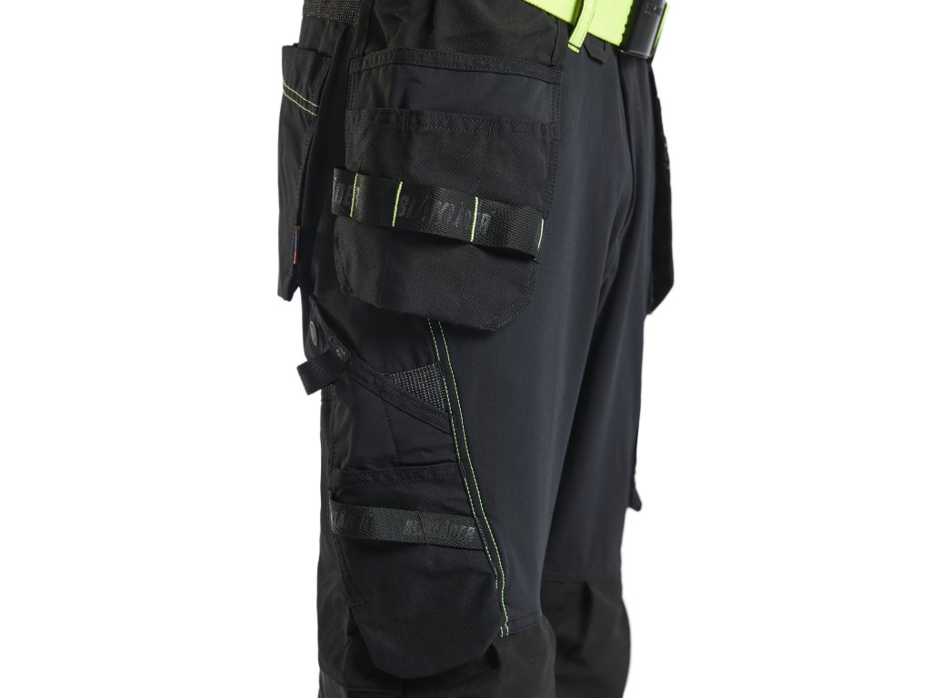 Řemeslnické kalhoty vyrobené z lehčí látky se čtyřsměrným strečem, které poskytují maximální pohodlí. Kalhoty mají užší, přiléhavější střih. S kapsami na chrániče kolenou ze streče CORDURA® s otvorem ve spodní části, pouzdrovými kapsami, z nichž jedna je na zip, našitými zadními kapsami, z nichž jedna je na zip, kapsou na pravítko a očkem na kladivo na obou stranách. Vsadka ze síťoviny na zadní straně kolen zajišťuje lepší odvětrávání, což se hodí během dlouhých, vyčerpávajících pracovních dní.Dodatočné parametre