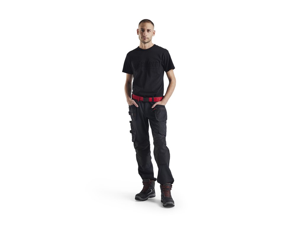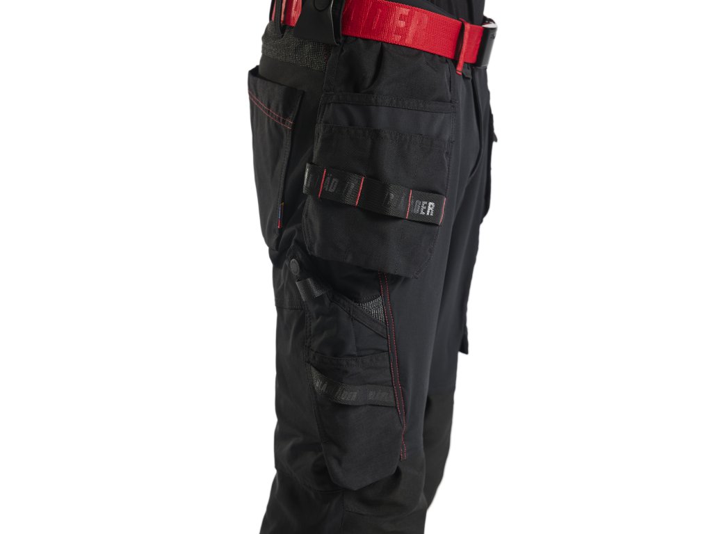 | Zesílení: | Kolenní kapsy zesílené materiálem CORDURA® Stretch, Kapsy na hrebíky, zadní kapsy, kapsa na metr, nožní kapsy, kolena a lem zesílené materiálem CORDURA® |