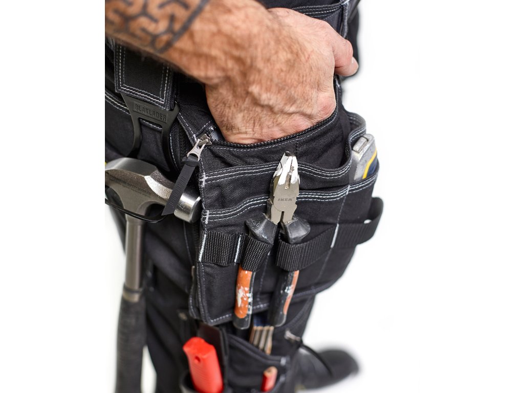 | Kapsy na nářadí: | Kapsy na nářadí – extra široké, vybavené držáky nářadí a přídavnými oddíly na nářadí, Zip pro pevné nebo volné kapsy na nářadí |