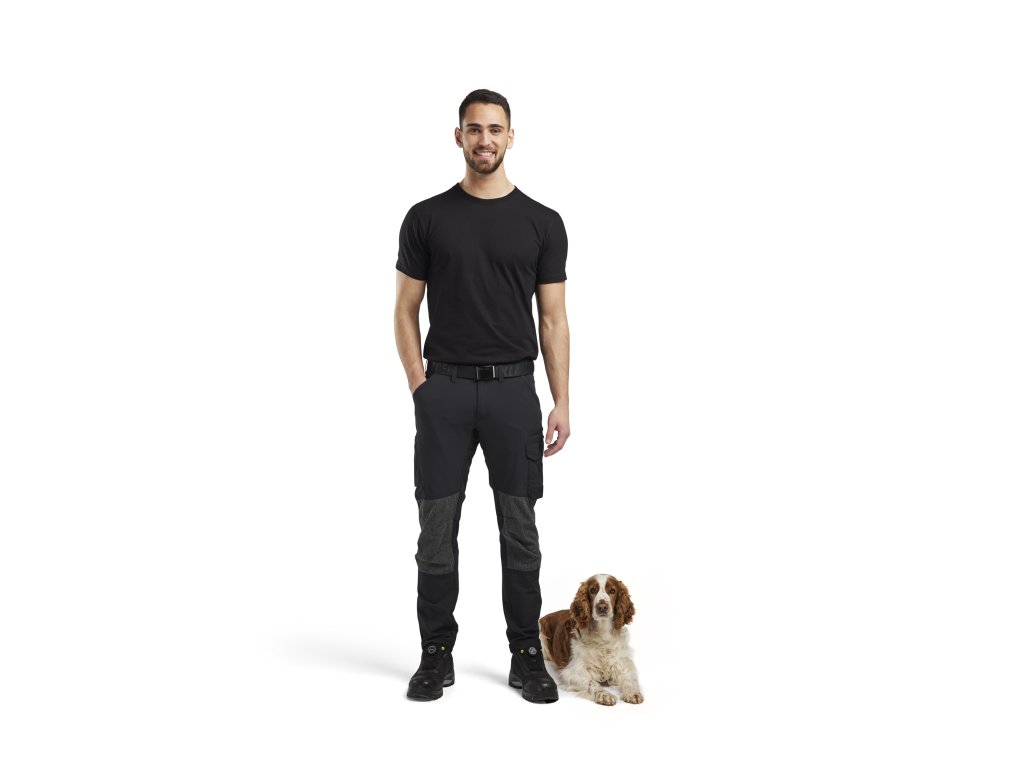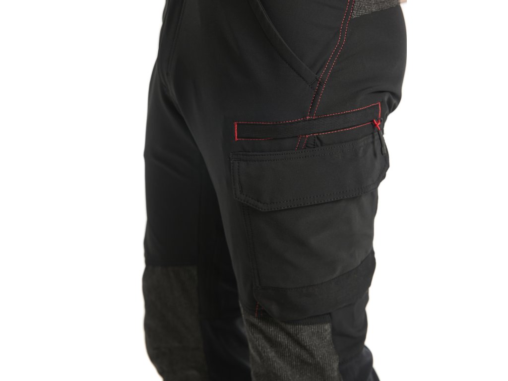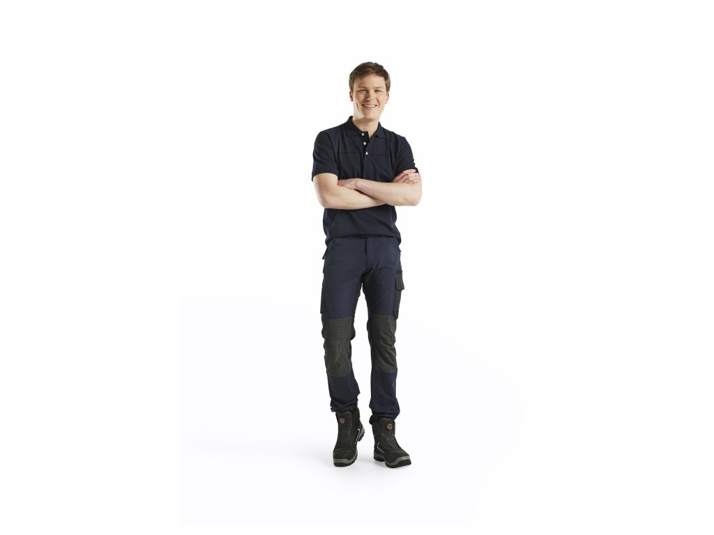 servisní kalhoty vyrobené z pohodlných vláken roztažných ve 4 smerech, které lze nosit jak v práci, tak pri neformálních príležitostech. Tyto kalhoty mají užší strih a slim fit vzhled, který má dnes mnoho uživatelu v oblibe. Elastický pas zvyšuje pohodlí. Lemy lze nastavovat a sítová vložka na zadní strane kolen zlepšuje vetrání. Pracovní dny v nepohodlí jsou již jen dávnou vzpomínkou.Dodatočné parametre