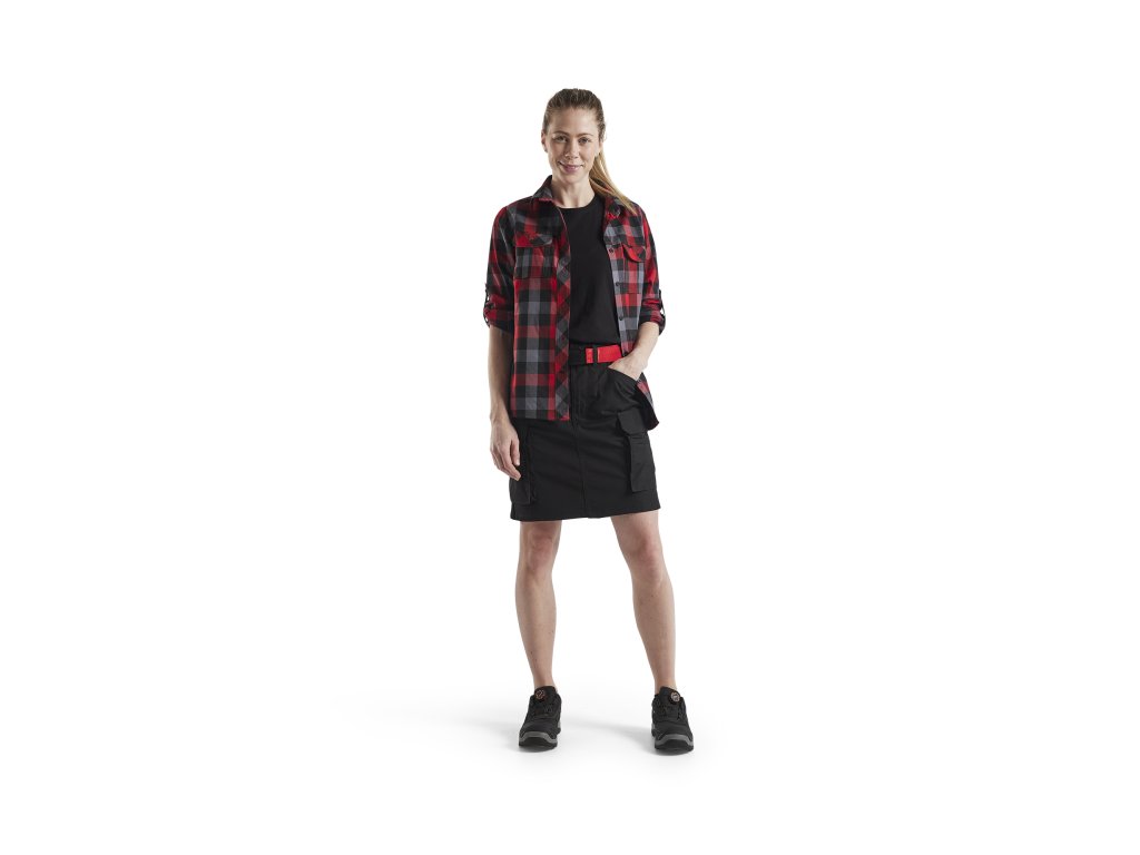 sukne urcená pro servisní práce a práci v prumyslu. Tato sukne s vnitrními kratasami umožnuje maximální pohyblivost a elastický pas zajištuje pohodlí po celý den. Zadní díl sukne je vyroben z pohodlného materiálu strecového ve 4 smerech. Na klopách kapes je magnetické zapínání místo zipu, sukne má délku tesne nad kolena.Dodatočné parametre