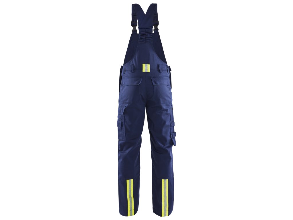 Montérky s laclem vhodné pro svařování a podobné činnosti. Lze je v pase regulovat pomocí knoflíků a mají náprsní kapsu, vnější kapsy na chrániče kolenou, kapsu na levé nohavici, kapsu na skládací metr napravo a reflexní prvky v zadní části, spodní části nohavic a na zadním poutku na pásek. Testováno pro průmyslové praní. Certifikováno podle EN 1149-5, EN ISO 11612, EN ISO 11611, IEC 61482-2, EN 14404.Dodatočné parametre