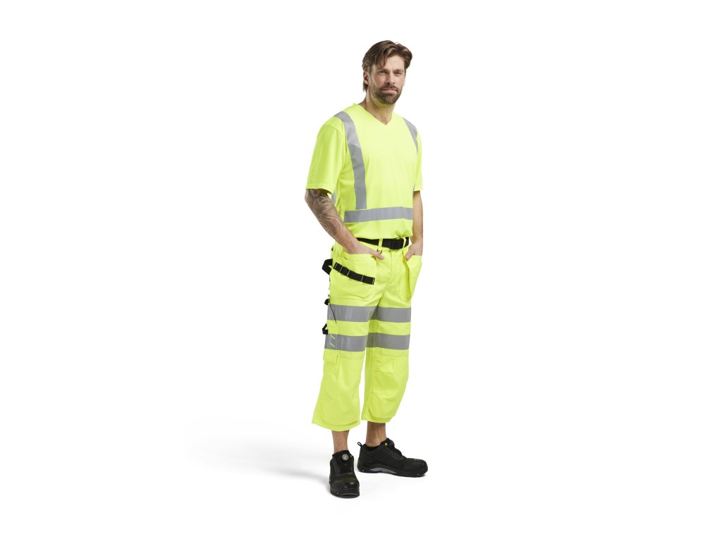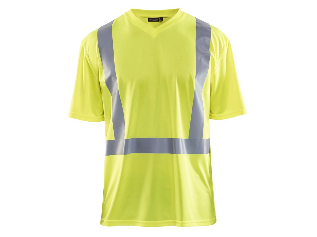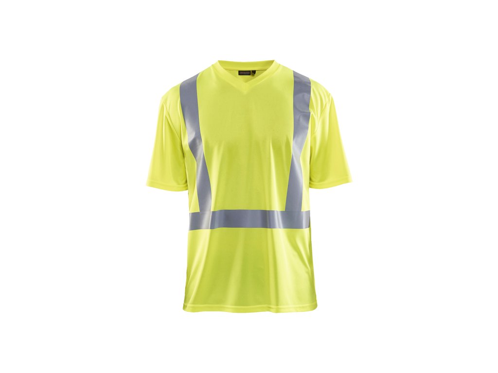 Tričko s krátkými rukávy s ochranou před UV zářením a výstřihem do V. Měkké reflexní prvky kopírují pohyb těla. Lehký úplet se strukturou, která dobře větrá. Odvod vlhkosti pro příjemný pocit sucha na těle. Certifikováno podle normy EN 471 / ISO 20471 třída 2. Oděv chrání před UV zářením a má SPF 40+. Reflexní prvky jsou transferové. Tričko je certifikováno podle normy EN jak pro reflexní oděvy, tak pro ochranu před UV zářením.Dodatočné parametre