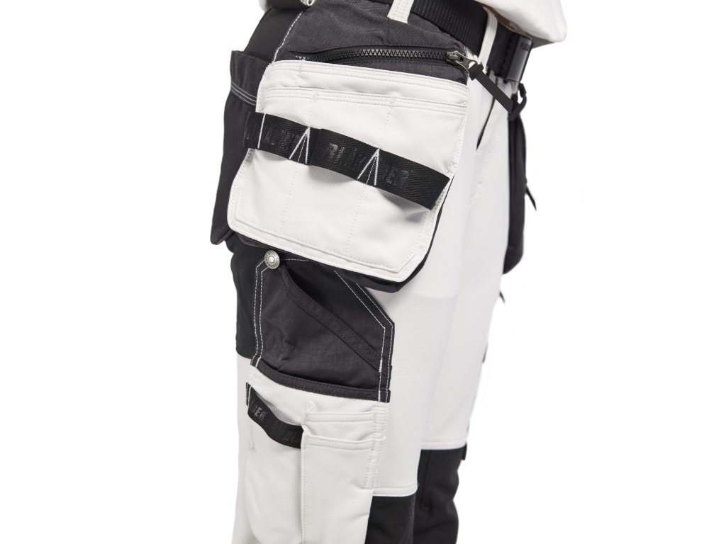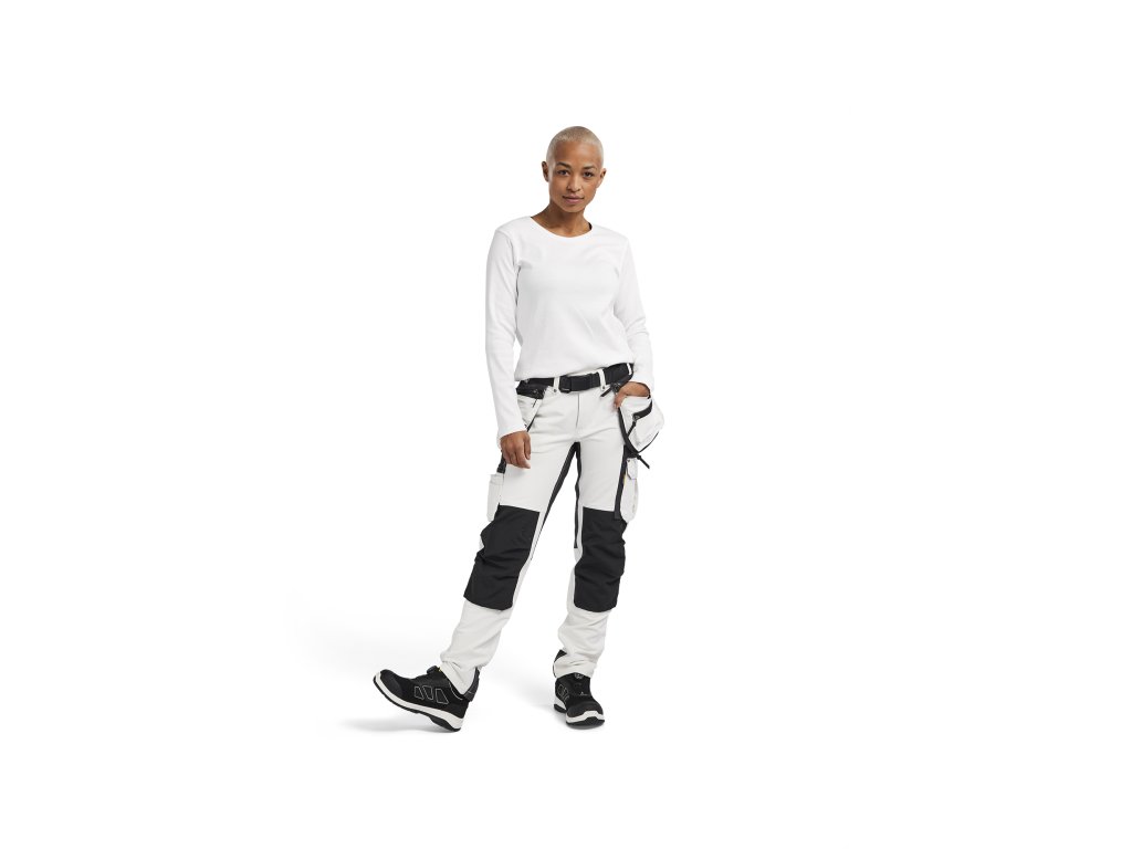 Smooth and comfortable painter trousers that are extremely soft and flexible with tapered legs. Has an elasticated waist for increased comfort and elongation at the bottom. The trousers are designed to handle demanding tasks without compromising comfort and fit. The material is soft 4-way stretch that is both strong and stretchy in all directions. The trousers have advanced details and specially adapted pockets for brushes and putty and painting knives, plus holster pockets. The knee protection pocket is reinforced with CORDURA® Stretch outside and ordinary stretch inside for increased mobility. Soft mesh stretch in kneecap for good ventilation. Leg hem with reinforcement at the back provides effective protection against wear. Also available in men's model 1079.Dodatočné parametre